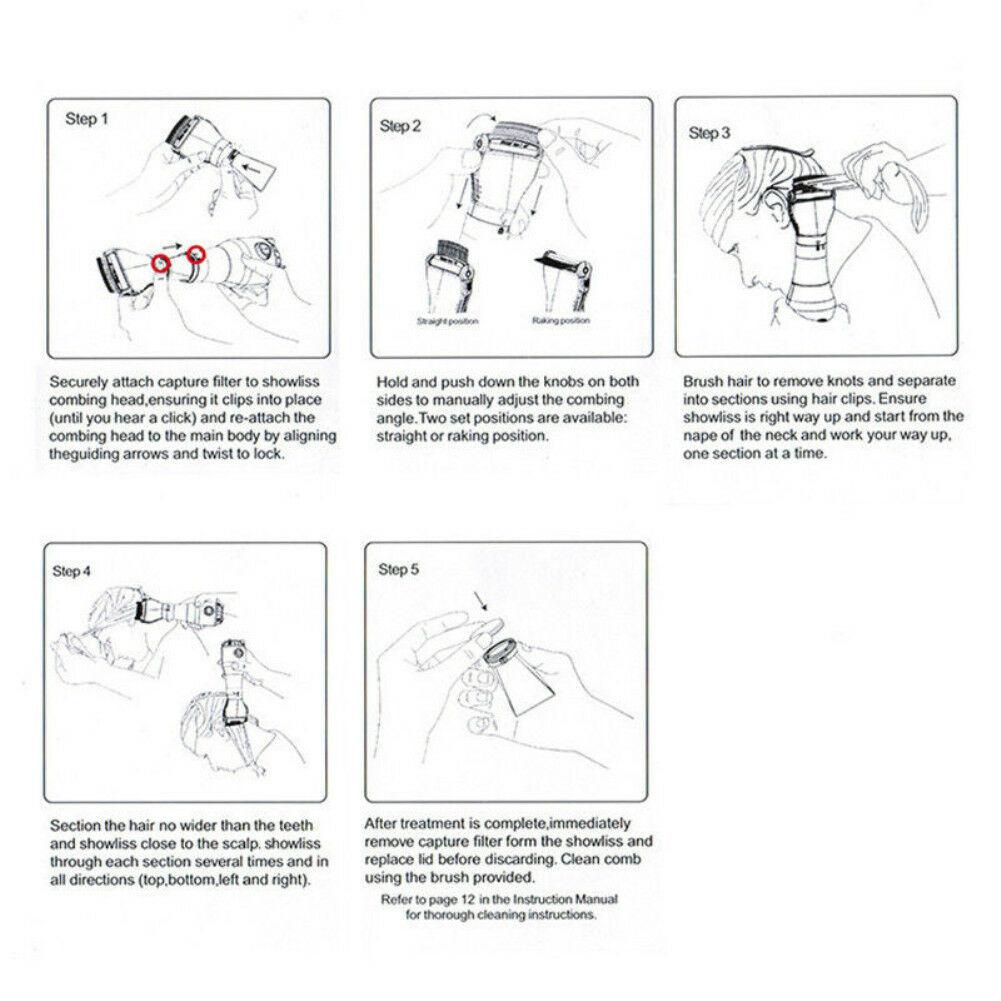 Η χτένα χρησιμοποιεί ήπια αναρρόφηση και λεπτή μεταλλική κεφαλή για να αφαιρεί τα παράσιτα αποτελεσματικά, ενώ τα συγκρατεί στο ειδικό δοχείο συλλογής.