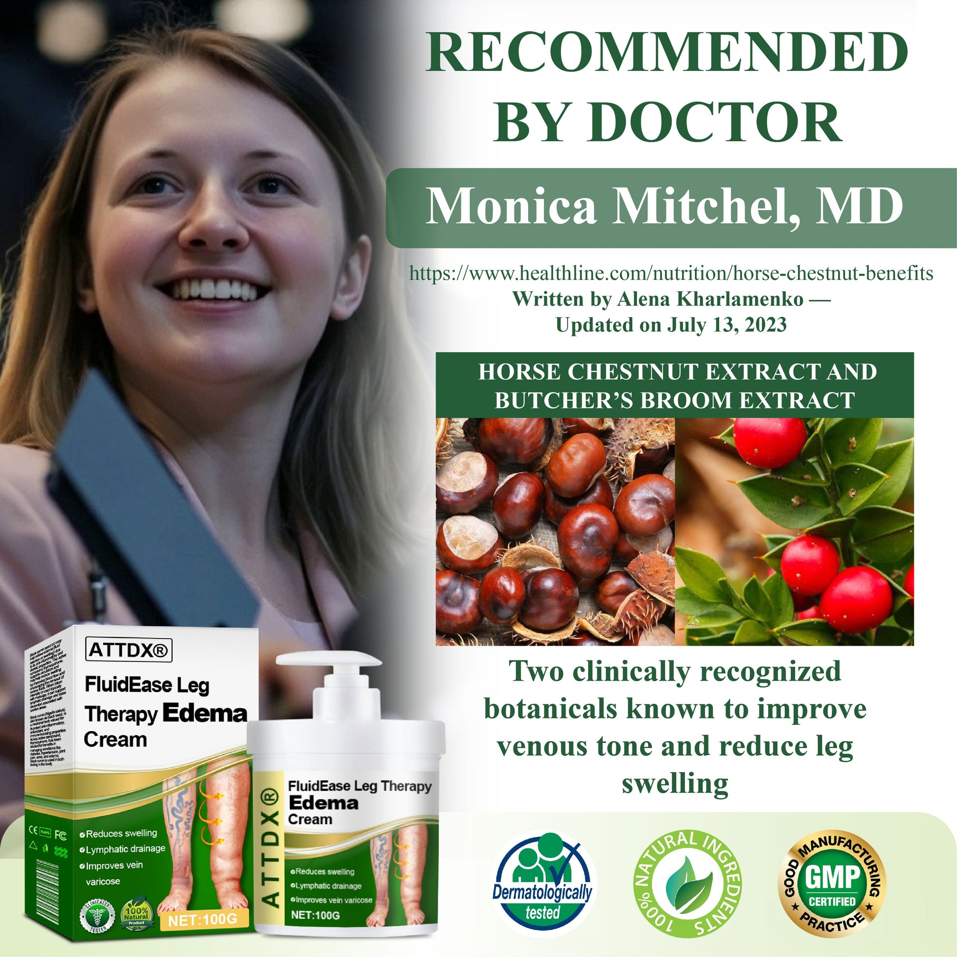 Υποστηριζόμενη από την παραδοσιακή χρήση και τη σύγχρονη έρευνα, η φόρμουλα συνδυάζει το εκχύλισμα καστανιάς αλόγου, πλούσιο σε εσκίνη και το Butcher's Broom με τις ρουσκογενίνες του, δύο κλινικά αναγνωρισμένα βοτανικά συστατικά που είναι γνωστό ότι βελτιώνουν τον φλεβικό τόνο και μειώνουν το πρήξιμο. Μαζί, βοηθούν στην ανακούφιση από το πρήξιμο και το βάρος των ποδιών, προάγοντας την υγιέστερη κυκλοφορία και την αποστράγγιση των υγρών.
