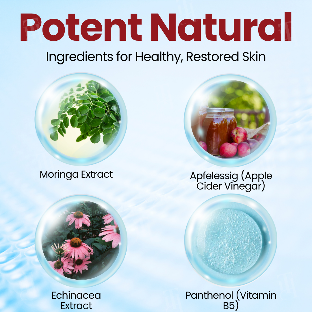 🛡️Μειώνει τη Φλεγμονή και Παρέχει Προστασία: Η Πανθενόλη (Βιταμίνη Β5) περιέχεται για να ενυδατώνει και να προάγει την αναγέννηση του δέρματος, σε συνδυασμό με Μορίνγκα και μηλόξυδο για να μειώνει τη φλεγμονή και να προσφέρει αντιμικροβιακή προστασία. Αυτός ο συνδυασμός δημιουργεί ένα ιδανικό περιβάλλον επούλωσης, επιτρέποντας στις πληγές να αναρρώσουν γρήγορα και αποτελεσματικά.
