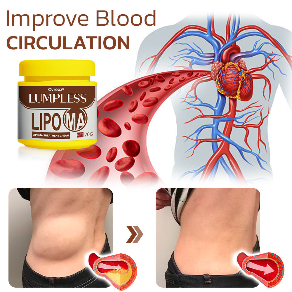 Βοηθά στη συρρίκνωση λιπωδών όγκων και οζιδίων λιπωμάτων, ιδιαίτερα στην περιοχή του λαιμού. Αυτή η κρέμα ανακουφίζει από τον πόνο και τη νευρολογική δυσφορία που συνδέεται με διάφορους τύπους λιπωμάτων και λειτουργεί ως προληπτικό μέτρο ενάντια στην ανάπτυξη λιπωμάτων σε άτομα υπέρβαρα ή παχύσαρκα.