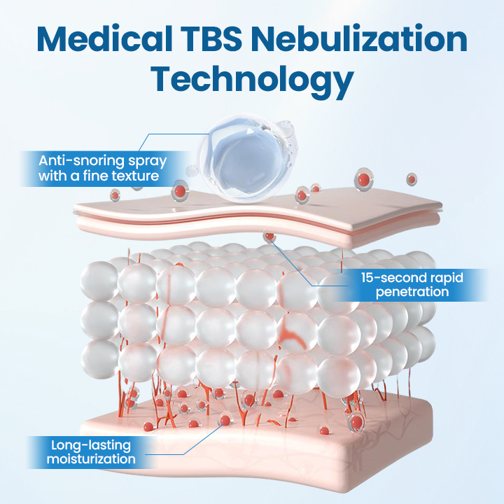 Το Σπρέι κατά του Ροχαλητού χρησιμοποιεί την τεχνολογία TBS Micro-Mist με τριπλή δράση για να στοχεύσει με ακρίβεια και αποτελεσματικότητα τις βασικές αιτίες του ροχαλητού: